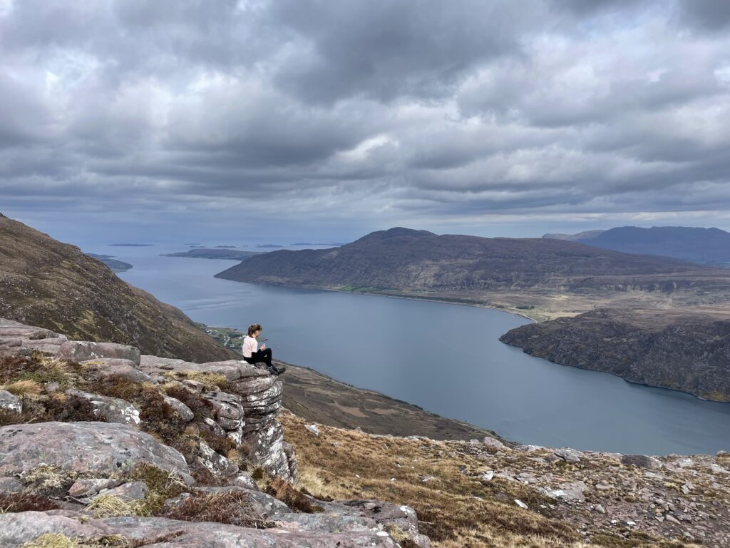 Nog een paar meter voordat we op de eerste top zitten waar we in gesprek raken met een jong stel die wel de klauterroute heeft genomen. Tips over de omgeving worden uitgewisseld. Bij ons gaat een boottocht naar Handa op het lijstje. Een eiland vol puffins. We eten wat, genieten van het uitzicht en verbazen ons over hoe rustig het weer hier is. En dat op 1.062 meter hoogte.