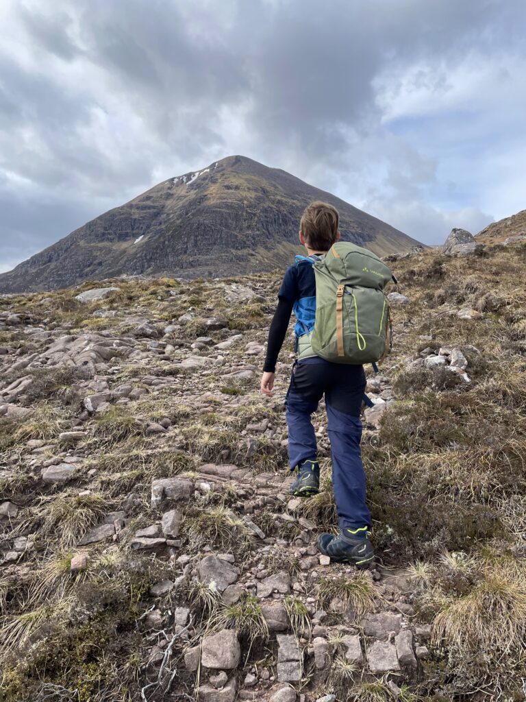 Wij parkeren de auto vlakbij de reddingsdienst, maar verwachten hem niet nodig te hebben. Met twee kinderen is de ronde over de berggraat geen optie, tenminste niet voor ons. Wij gaan vandaag erop en eraf. We mikken op twee munro’s: Bidein a Ghlas Thuill en Sgùrr Fiona. In goed Nederlands ’top van de grijze holte’ en de ‘eerlijke top’. Eerst maar eens kijken of we zo ver gaan komen.