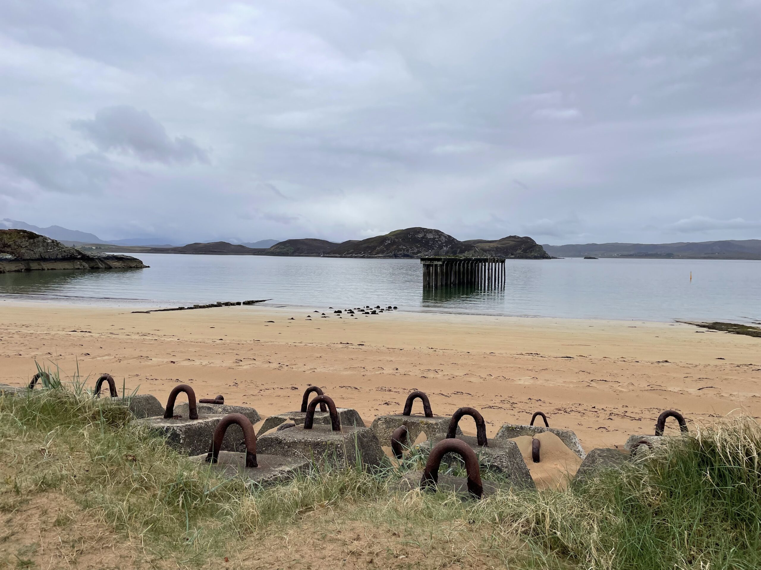 Mijn benen protesteren wel enigszins. De klim naar de top van Slioch heeft er goed ingehakt. Gelukkig wordt het vandaag een korte rond, het is eb en ik kan bijna tot aan de pier lopen. We worden verwelkomt door ruim honderd noordse sterns die elk jaar de pier gebruiken om te nesten. Op de halve pier zitten ze veilig en komen alleen een paar zwemmers elke zondagochtend om 10 uur de rust verstoren. De sterns zijn ware trekvogels, na het broedseizoen vliegen ze met gemak een paar keer om de wereld.