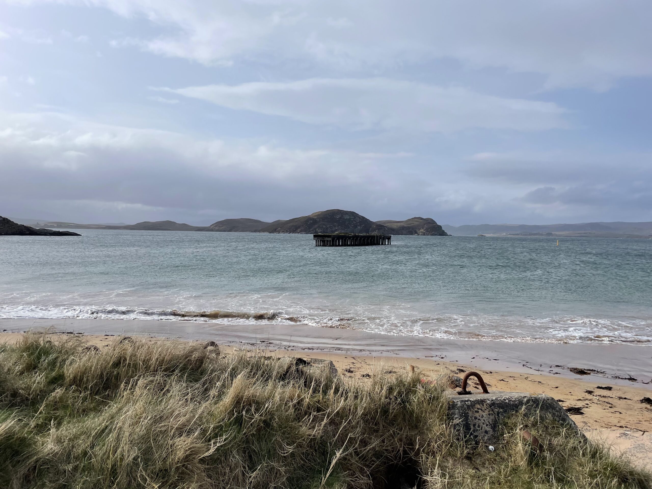 Gelukkig zijn we snel weer wat in de luwte van de pier en is het weer tijd om nieuwtjes uit te wisselen. Ze vragen naar onze avonturen van deze week en ik vertel uitgebreid over onze kajak toer van gisteren. Bruce en zijn vrouw hebben hun eigen kajaks en maken regelmatig een tochtje over het loch.